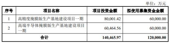 本次向特定对象刊行股票召募资金总和不逾越120,000.00万元(含本数),召募资金扣除猜度刊行用度后将用于投资高精度掩膜版分娩基地设立格式一期、高端半导体掩膜版分娩基地设立格式一期。